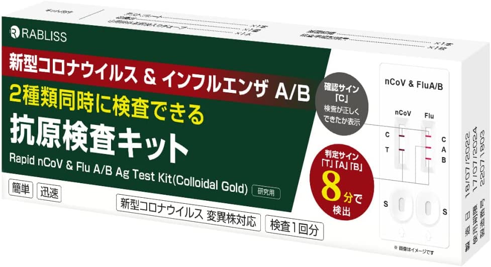 新型コロナウイルスとインフルエンザA/B 2種類同時検査ができる検査キット
