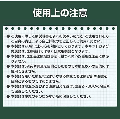 | ※ご使用上の注意 | ●ご使用に際しては説明書をよくお読みいただき、ご使用される方ご自身の責任による自己採取のもと正しくご使用ください。 ●本件キット及び付属品は医療機器ではなく研究用製品となります。 ●本製品は、医薬品医療機器等法に基づく体外診断用医薬品ではありません。 ●本製品は、研究や調査を目的としたもので本検査以外の目的に使用できません。 ●本製品を用いた検査判定はいかなる意味でも医療診断や治療を目的とするおのではありません。 ●本製品は高温多湿および直射日光を避け、室温0~30℃の部屋で保管してください。 ●本製品は、小児の手の届かないところで保管してください。 ●製造番号と使用期限は個箱に印刷されています。使用期限以内にご使用ください。 ●使用後のキットは感染源となる可能性があります。地域のルールに従い適切に取り扱い廃棄してください。 ●20分以上経過した後の出現は判定には使用しないでください。 ※送料別途 1セットにつき全国一律550円(税込) 【キャンセル・返品は不可】 |